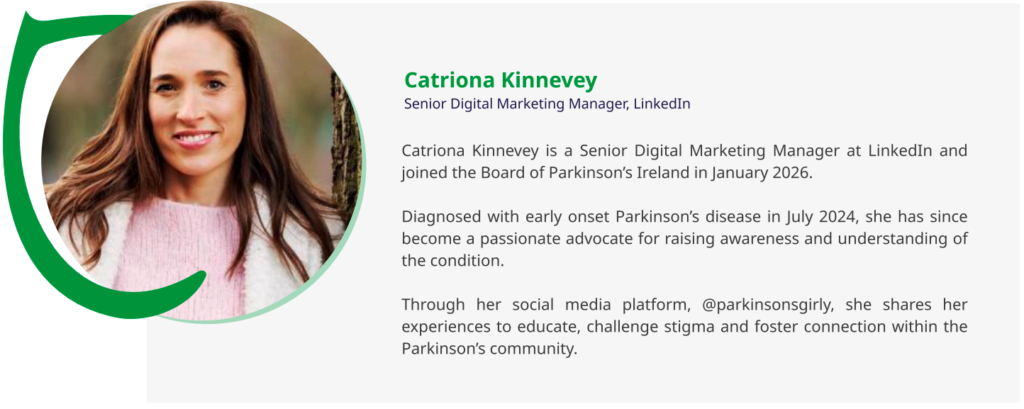 12.25 – 12.50 Navigating Employment After an Early Parkinson’s Disease Diagnosis -Catriona Kinnevey