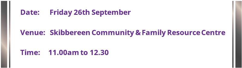 A special thank you to Grainne in Skibbereen Community & Family Resource Centre who has kindly agreed to assist us in arranging this and supplying the venue.