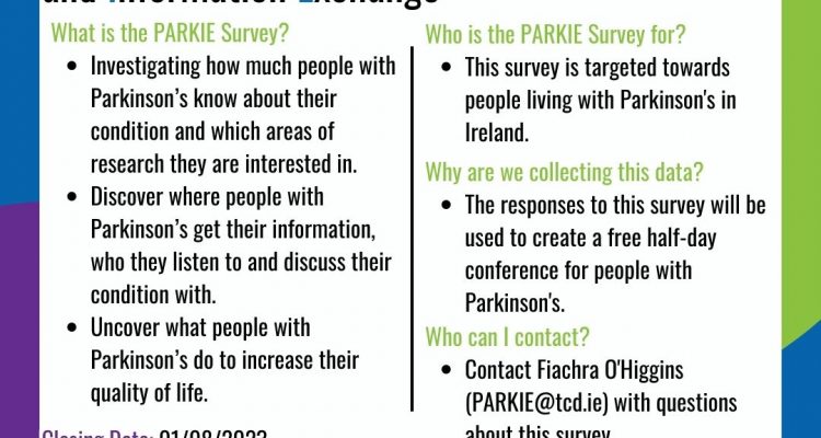 “The PARKIE (Parkinson’s community Awareness of Research; emphasis on Knowledge and Information Exchange) survey is being conducted by Trinity College Dublin, the NAI, and EOPD Ireland.