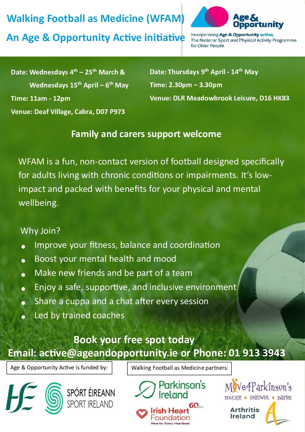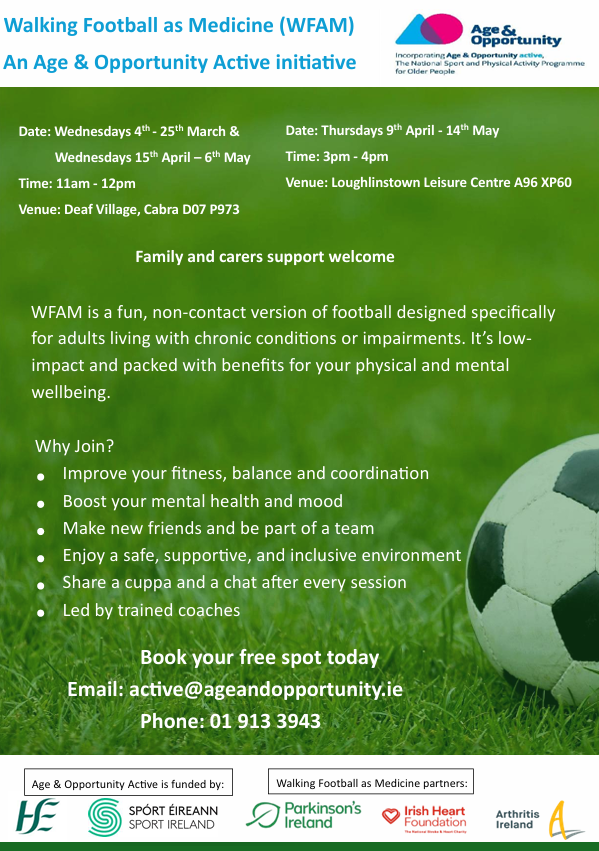 Following a highly successful pilot last year, the Walking Football as Medicine initiative is delighted to return for 2026 with two venues across Dublin.